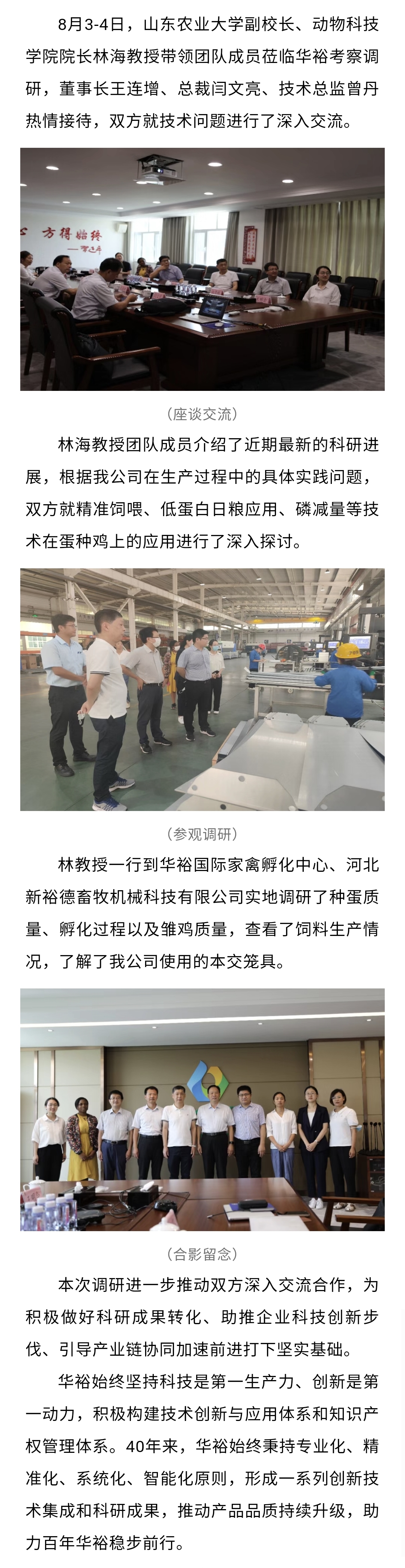 山東農(nóng)業(yè)大學(xué)副校長(zhǎng)、動(dòng)物科技學(xué)院院長(zhǎng)林海教授一行蒞臨華??疾煺{(diào)研