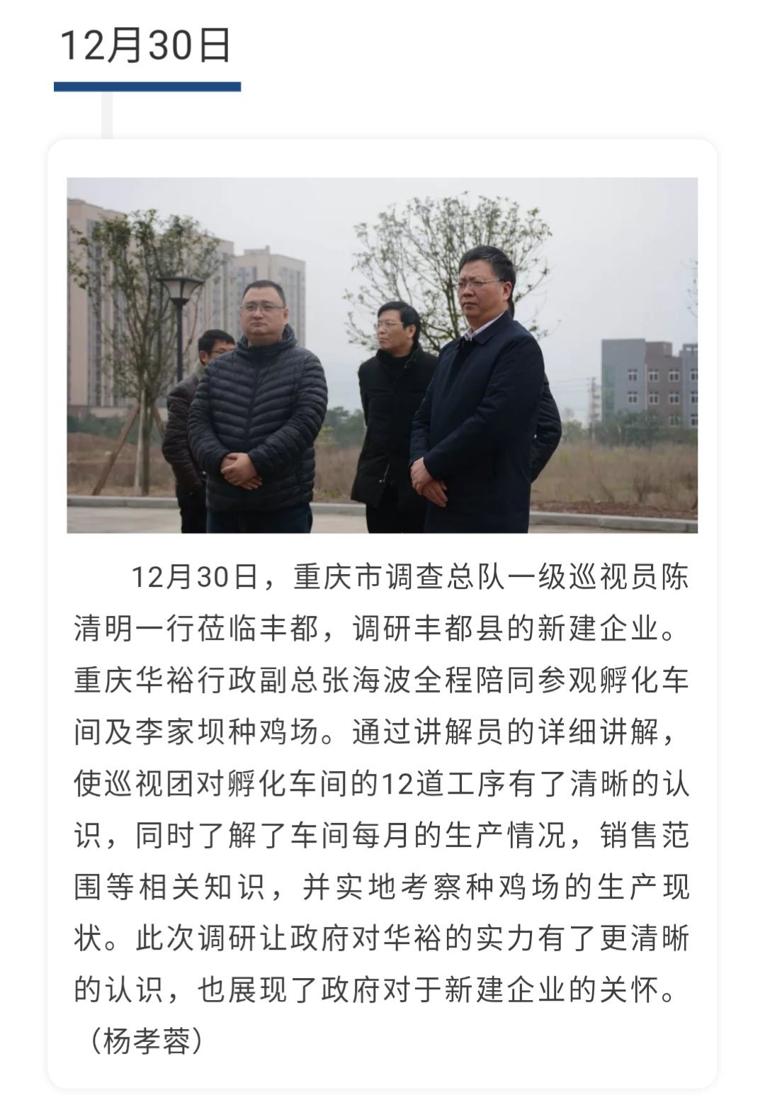 【一周快報(bào)】重慶市調(diào)查總隊(duì)一級(jí)巡視員陳清明一行蒞臨重慶華裕